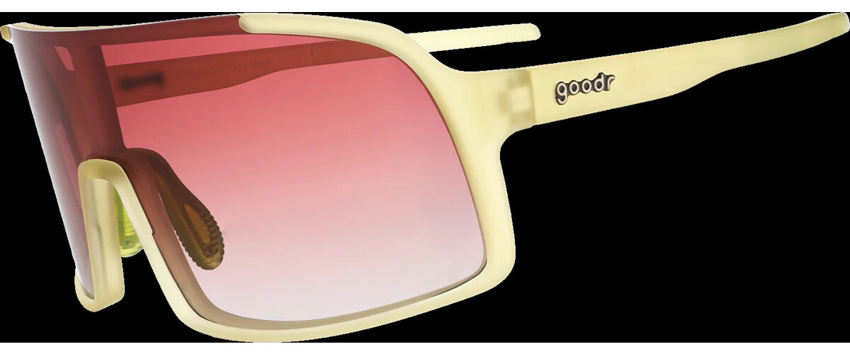 Turn heads in these chartreuse Astro Gs with a rose gradient lens. These no-slip, no-bounce shield sunglasses are perfect for crushing workouts, weekend adventures, or looking like a snack anytime of day.